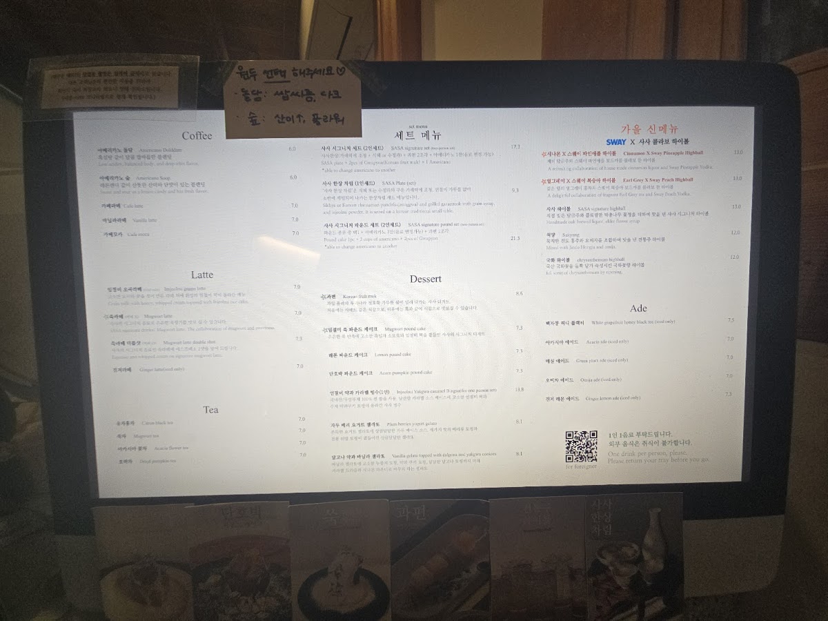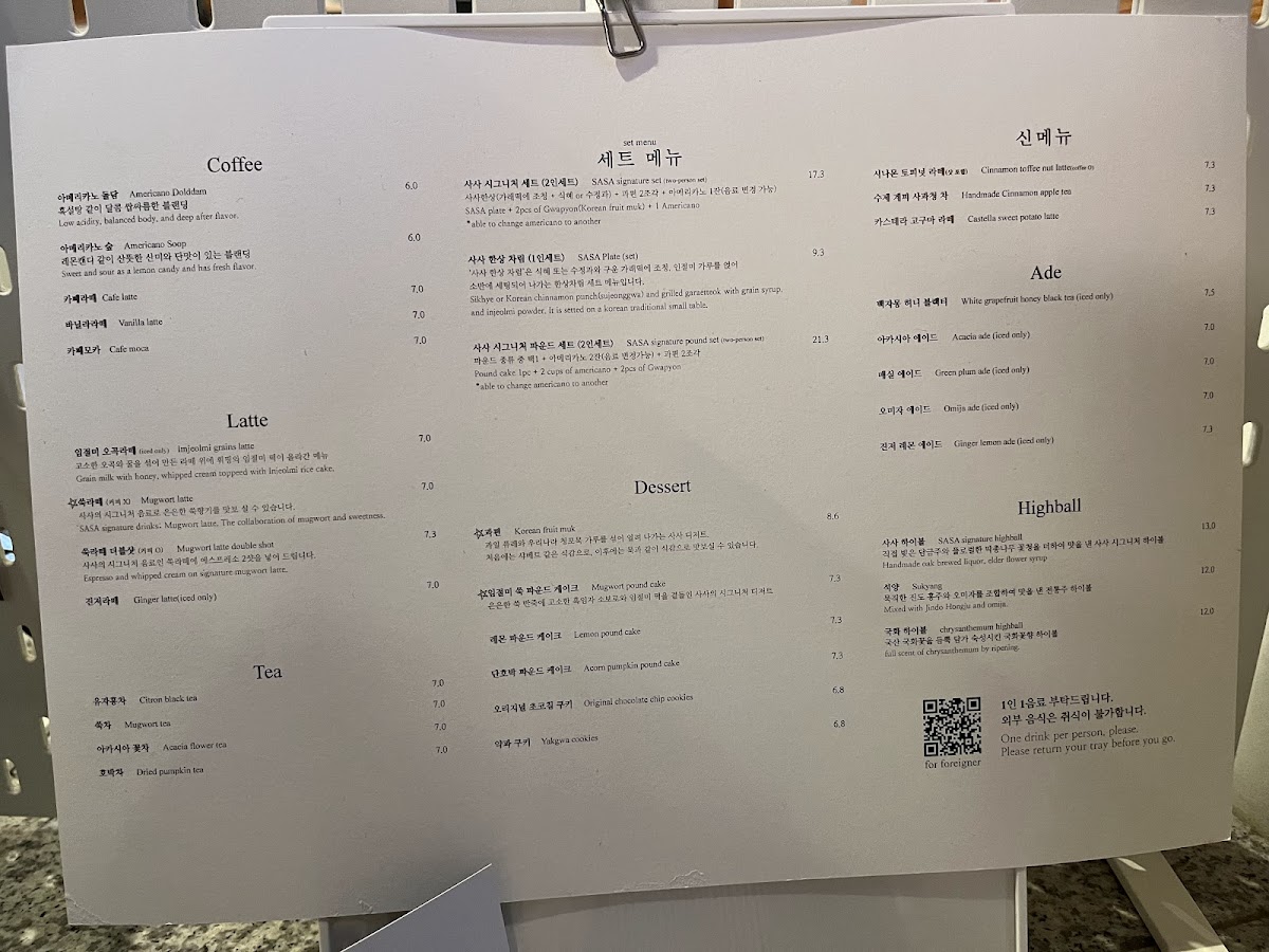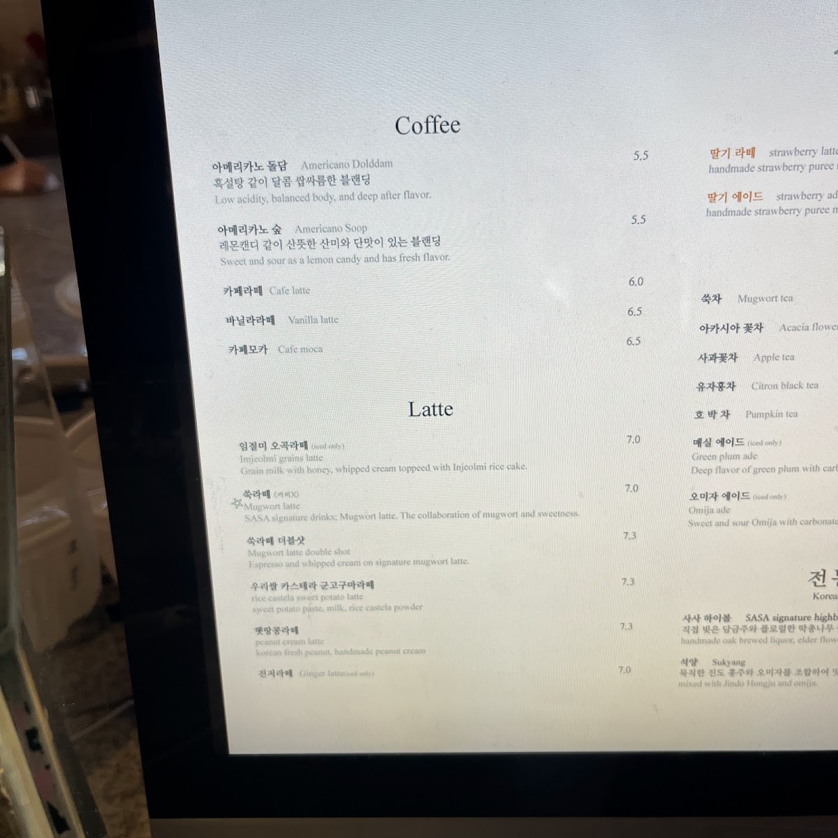 The menu at Cafe Sa Sa in Jongno District offers a delightful mix of sweet and savory options, perfect for any time of day. Their standout dish, 레몬파운드케이크 (Lemon Pound Cake), is a must-try, delivering a light and tangy flavor that pairs beautifully with their rich coffee selection. For those craving something heartier, the cafe also serves a variety of savory options like sandwiches and light pastas. The atmosphere is cozy, making it an ideal spot for a relaxing meal or a quick snack. Prices are reasonable, with most dishes falling within an affordable range, ensuring a satisfying experience without breaking the bank. Whether you’re stopping by for a sweet treat or a light meal, Cafe Sa Sa’s menu delivers delicious choices for all tastes.